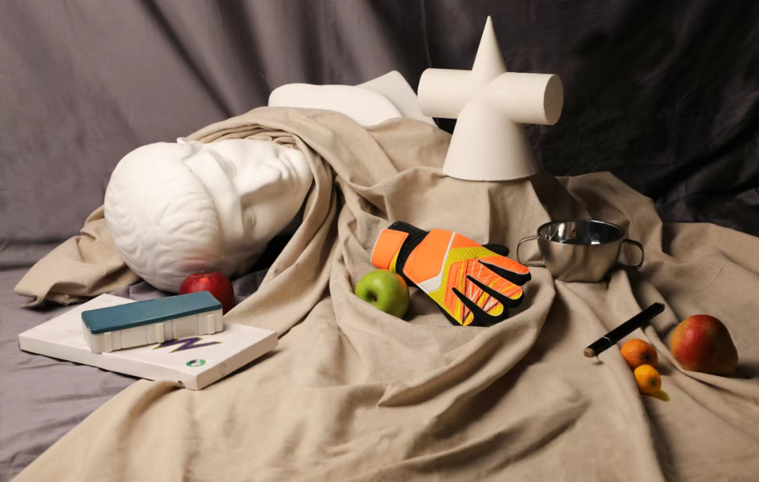 河南省素描考题连续六年为人物头像,今年采用静物组合为试题表现主体,有一定的变化与调整。在静物中增添了被衬布遮盖的、放倒的石膏像,改变了人们以往的视觉习惯,加上衬布、几何形体、手套等物体,构成一幅和谐、稳定、空间感较强的画面,既有一定的表现难度,又增添一些审美意趣。试题采用顶侧光平视拍摄,静物组合形体明确,黑白灰关系层次清晰,空间感较强。放倒的石膏像作为整体静物的组成部分,一定程度上增加了画面表达上主次和虚实处理的难度,重点考查学生对素描关系、形体空间透视关系以及构图的理解与表现能力。