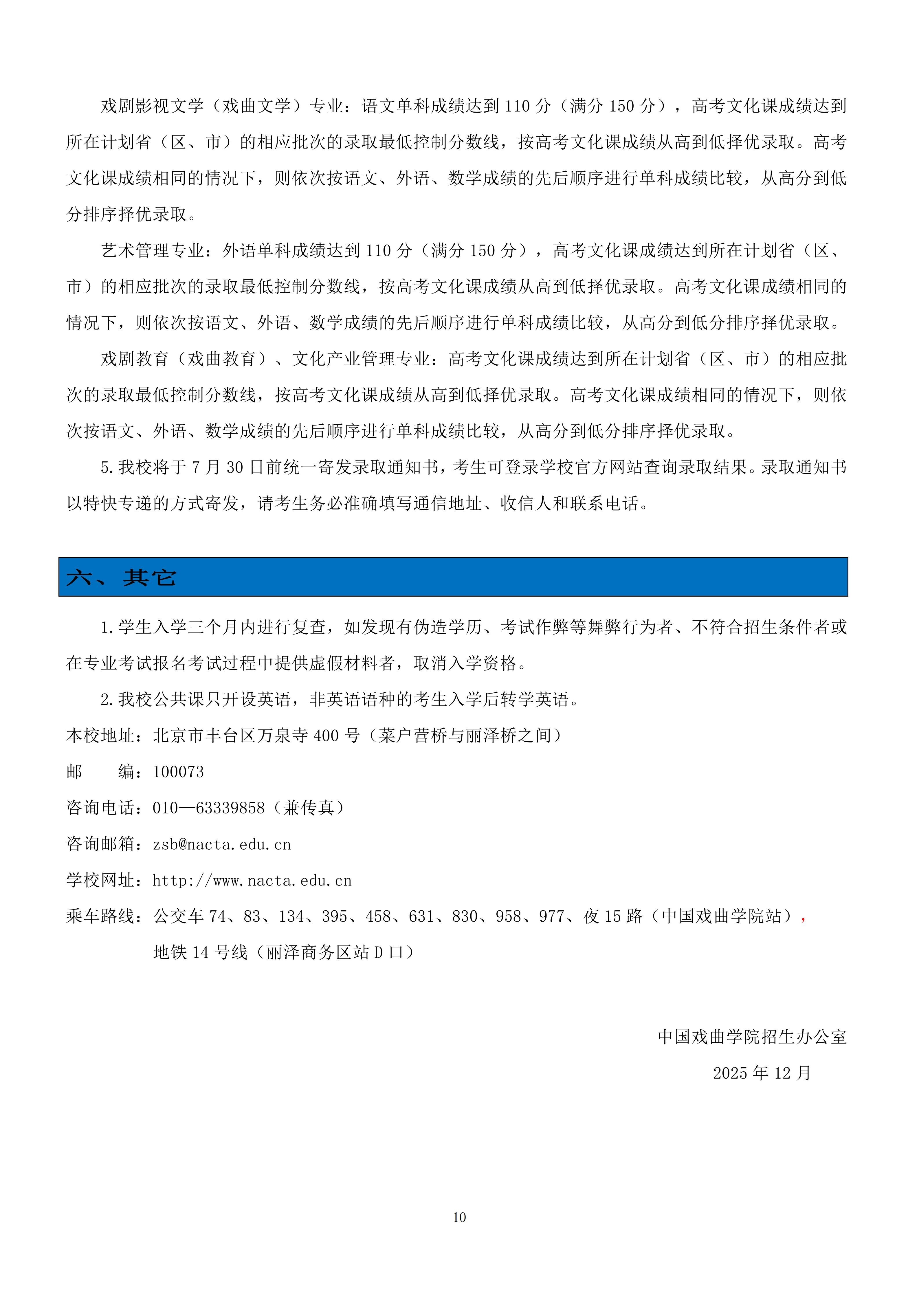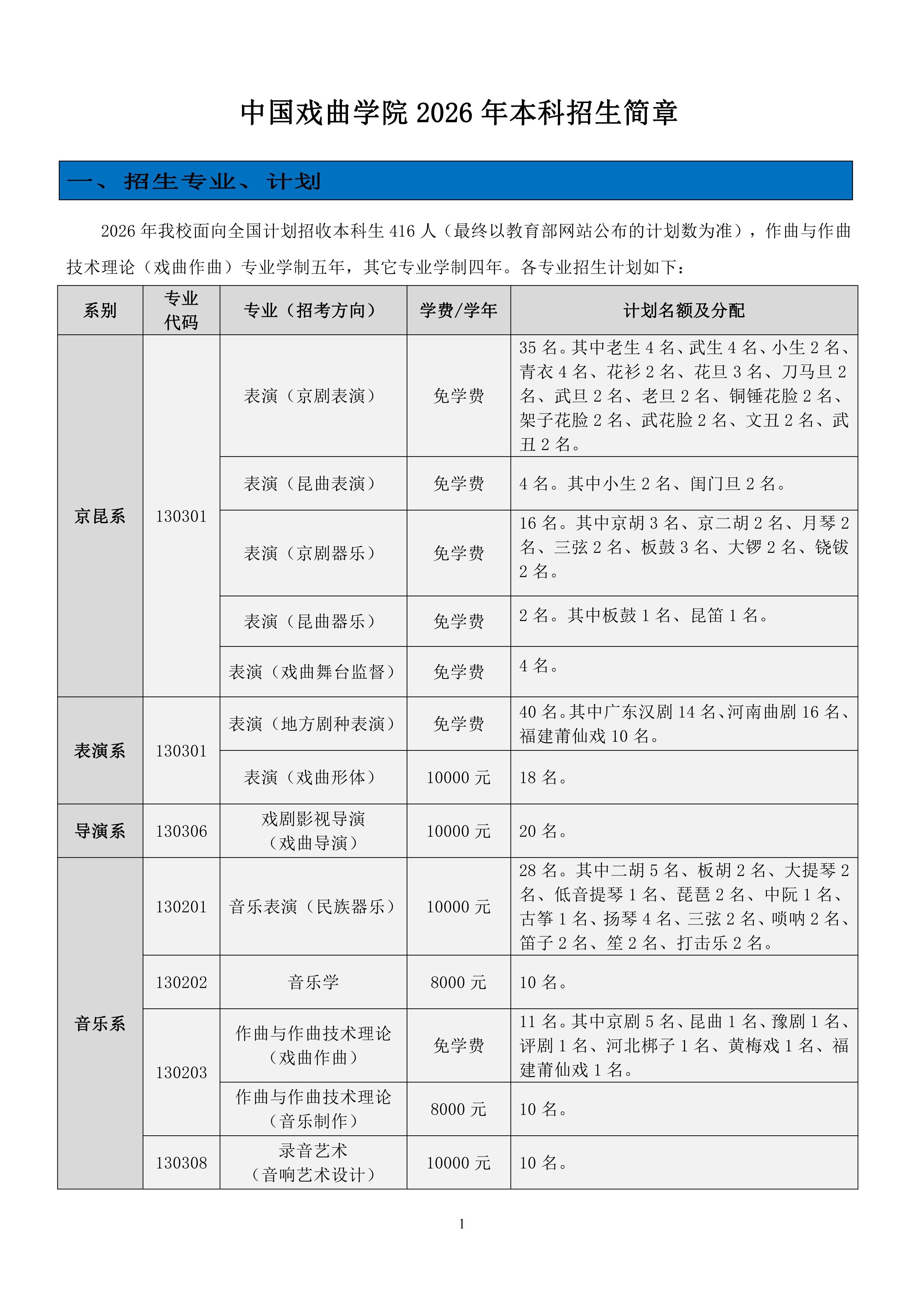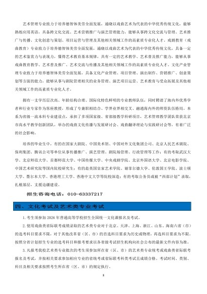 中国戏曲学院2026年本科招生简章